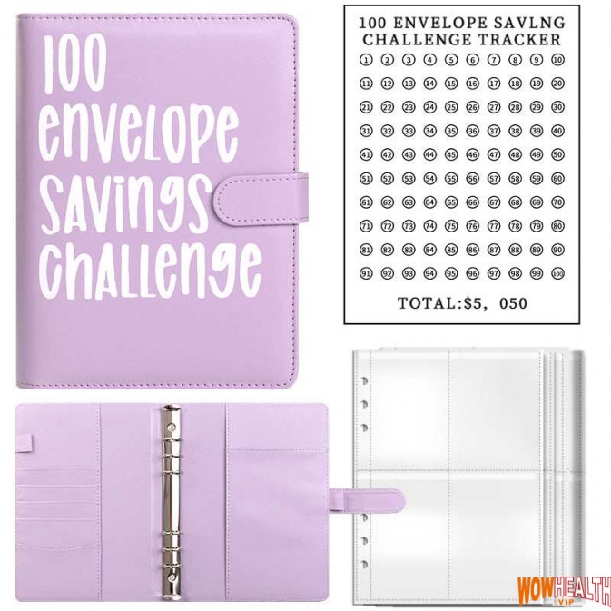 100 Envelope Savings Challenge Binders, 1 Piece Budget Binder, Money Saving Challenge Book, Savings Challenge Notebook, Money Organizer, Budget Planner Book for Budgeting